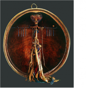 Göğün direği, Gök Kubbe’yi taşıyan kutsal direktir. Kızıl Tamu’dan Uçmağ’a gider, Yol’dur. Yerin yedi kat dibi, cehennem, kovulmuş tinin ceza yurdu Kızıl Tamu’nun hükümdarı Erlik Han’dır. Şehit olanlar, iyi ruhlar ise öldüklerinde Uçmağ’a giderler. Burası Gök Tengri’nin katıdır. Atlar, güçtür, cesarettir, erktir. Kader rüzgarında dörtnala koşmak için ruhun taşıyanıdır, yolu izleyendir. Sungur, doğan türü yırtıcı bir kuştur. Bu figür de At gibi bir erk hayvanıdır. Şaman ruhların gözetimi, Tabiat Ananın ruhları gibi anlamlarının yanı sıra en belirgin özellik özgürlüktür. Yüce ruhlarla iletişimdir. Alageyik, bütünlüğün sembolüdür. Birlik duygusuyla eşleşmek, aidiyet hissiyatıdır, ruhlarla toprağın bağlantısıdır. Bununla birlikte bireysel mücadelenin de yeri geldiğinde savaşçı enerjisine dönüştüğünü gösterir.